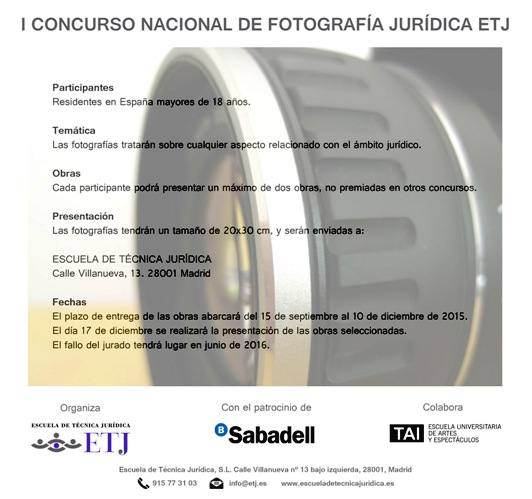Presentamos las bases del I Concurso Nacional de Fotografía Jurídica, organizado por la ETJ, por si fuera de vuestro interés.