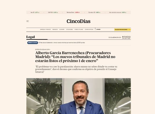 Facilitamos enlace a la entrevista al decano, Alberto N. García Barrenechea, y publicada hoy por el diario Cinco Días Jurídico:
