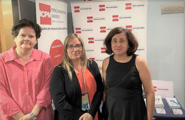 En la imagen, de izda. a dcha. la vicedecana M.ª Carmen Giménez Cardona junto a Débora Sánchez del Dpto. de Secretaría del ICPM, y la vocal M.ª Soledad Castañeda.
