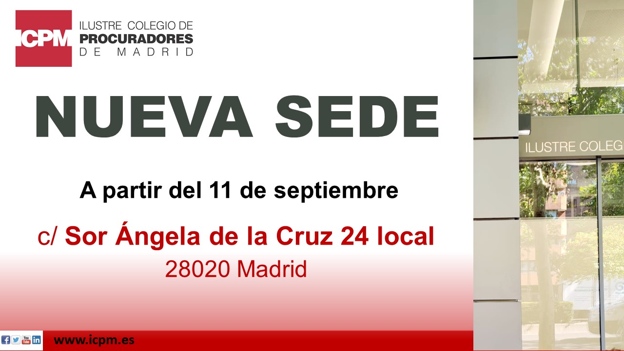 Finalizado el traslado de sede, estamos operativos en el nuevo emplazamiento de la calle Sor Ángela de Cruz 24 local, Madrid 28020, desde hoy lunes 11 DE SEPTIEMBRE, prestando atención a profesionales, ciudadanía y colegiados, en horario habitual y con los mismos teléfonos y correos electrónicos de contacto.