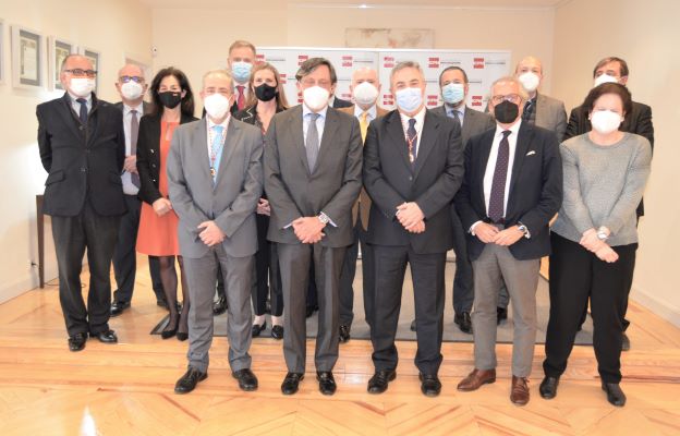 (En la imagen de izda. a dcha. en primera fila, Cristóbal Trillo, Gabriel M.ª de Diego, Francisco Ariza, Antonio M.ª Álvarez-Buylla y Carmen Giménez Cardona. En segunda fina, Ignacio Melchor, Antonio Sánchez-Jáuregui, Teresa de Donesteve, Noel de Dorremochea, María Pardillo, Jesús García-Orcoyen, José Ramón Rego, Alberto García Barrenechea, Ignacio Argos y Mariano Rodríguez)