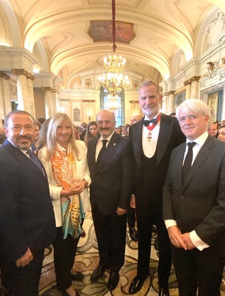 (En la imagen, Su Majestad el Rey con la presidenta del CGPJ y TS, Isabel Perelló; el presidente del Consejo General de la Abogacía, Salvador González; el presidente del Consejo General de Procuradores, Ricardo Garrido; y el decano del ICPM y secretario del Consejo General, Alberto N. García Barrenechea)