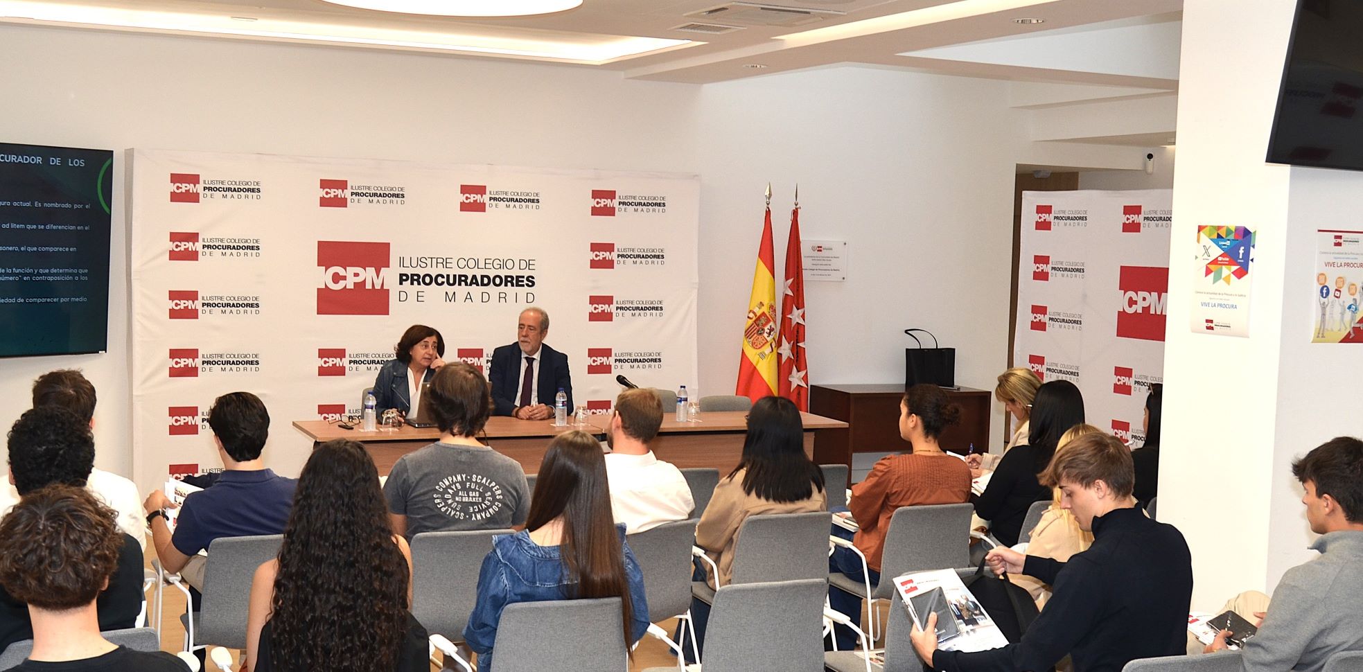 Además de una presentación general, se han expuesto algunas de las funciones de la Procura madrileña, la labor diaria de los despachos y algunos de los servicios que presta el Colegio, tanto a profesionales como a la ciudadanía: comunicaciones telemáticas, LexNet, gestión de notificaciones, Servicio Actos de Comunicación, Servicio de Representación Procesal, y Salas Seguras para conexiones telemáticas, entre otros. Antes de finalizar, ha tenido lugar un participativo turno de preguntas.