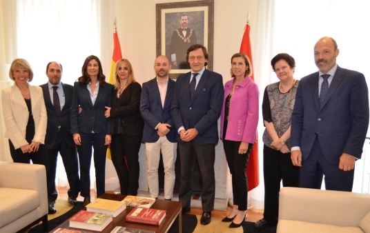 El decano Gabriel Mª de Diego, junto con la vicedecana, Rocío Sampere y los miembros de la Junta Ignacio Argos, Carmen Giménez, Pilar Azorín-Albiñana, María Granizo, María Pardillo y Álvaro García, han dado la bienvenida y agradecido su visita a la sede de nuestro Colegio.