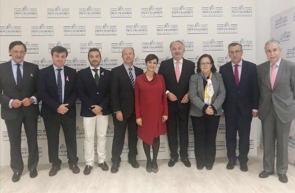 La delegación de la Comisión de Justicia del Congreso de Diputados, encabezada por su presidenta, Isabel Rodríguez García, visitó ayer la sede del Consejo General de Procuradores y fueron recibidos por su presidente Juan Carlos Estévez, el vicepresidente Javier Sánchez García, el secretario general José Manuel Villasante, y también por nuestro decano Gabriel Mª de Diego.