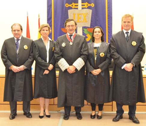 El acto estuvo presidido por la Junta Electoral, formada por Argimiro Vázquez Guillén, Marta Martínez Tripiana, Mª Concepción Hoyos Moliner, Virginia Cardenal Pombo y Mariano López Ramírez, para los que el Decano tuvo palabras de agradecimiento por su trabajo y dedicación para con la Institución.