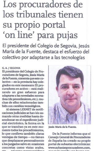 Queremos compartir el artículo que recoge los comentarios del Decano del Iltre. Colegio de Procuradores de Segovia, Jesús María de la Fuente, a temas de actualidad para la profesión como la adaptación a las nuevas tecnologías, Lexnet, las subastas judiciales y plataforma del CGPE, entre otros.