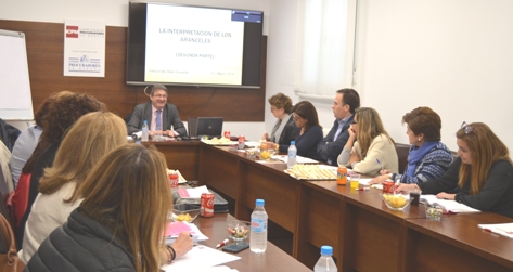 Hoy día 12 se ha celebrado en la sala de actos del ICPM, la segunda jornada formativa ?Aula? prevista sobre el tema de los Aranceles, en la que hemos contado nuevamente como ponente con el compañero Joaquín de Diego Quevedo.
