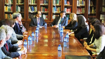 Ha sido recibido por el Decano, Gabriel de Diego, que ha agradecido su presencia para seguidamente, mantener una cordial reunión que ha contando también con la asistencia de varios miembros de la Junta de Gobierno, la Vicedecana Rocío Sampere, el Secretario Manuel Ortiz de Apodaca, el Contador Manuel Lanchares y los Vocales 4º, 5º y 8º Antonio Sánchez-Jauregui, Carmen Giménez y María Granizo, respectivamente.