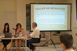 Un nuevo taller de mediación mercantil, simulacro de un caso real, con repaso de aspectos procesales, de técnicas de comunicación, de fondo legal, ha sido el trabajo de una jornada, celebrada el día 10 de julio, en la que treinta Procuradores-Mediadores han acudido a recibir más formación y compartir experiencias y dudas.