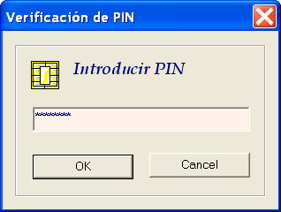 Pulsamos "aceptar" e introducimos nuestro PIN, facilitado en el sobre junto con la tarjeta de la firma electrónica.