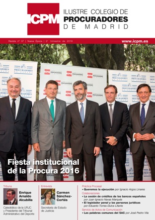 En esta nueva edición de la Revista ICPM, contamos en la sección TRIBUNA, con la colaboración de Enrique Arnaldo, Catedrático de Derecho Constitucional de la URJC y Presidente del Tribunal Administrativo del Deporte y, en la sección DE INTERÉS, se recogen las conclusiones del XIV Congreso Nacional de Procuradores celebrado en Bilbao el pasado mes de mayo, así como el Decreto declarando nulo el Decreto que declaraba desierto el Recurso de Casación por un error en la vía telemática.
