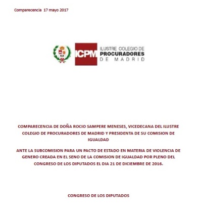 Como ya informamos, el pasado día 17 de mayo nuestra vicedecana y presidenta de la Comisión de igualdad, Rocío Sampere, compareció ante la mencionada Subcomisión para un Pacto de Estado en materia de Violencia de Género, con el fin de trasladar la importancia de que los procuradores puedan estar desde el primer momento en el proceso en temas de violencia de género.