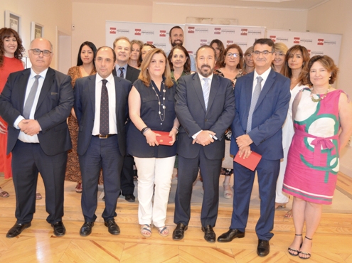 En la imagen los premiados junto con miembros de la Junta de Gobierno, compañeros, amigos y empleados del dpto. de Justicia Gratuita y Turno de Oficio también presentes en el acto.