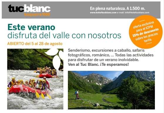 1. www.hoteltucblanc.com, y se deberá poner el código promocional ICPM21 para que salga el descuento (15%).