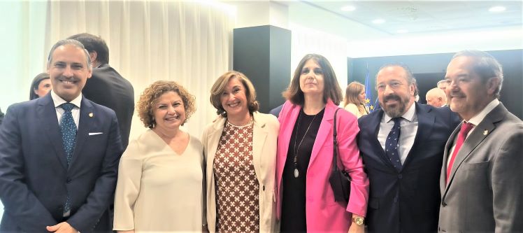 (En la imagen de izda. a dcha. el decano del ICAM, Eugenio Ribón; la decana de Registradores de España, María Emilia Adán García; la decana de Registradores de Madrid, Belén Merino; la magistrada juez decana de Madrid, M.ª Jesús del Barco; el decano del ICPM, Alberto N. García Barrenechea; y diputado del ICAM, José Ramón Couso).