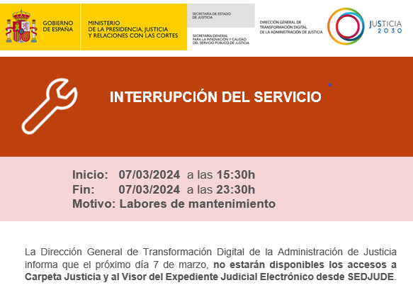 Parada planificada de las plataformas Carpeta Justicia y Visor de Expediente Judicial Electrónico programada: