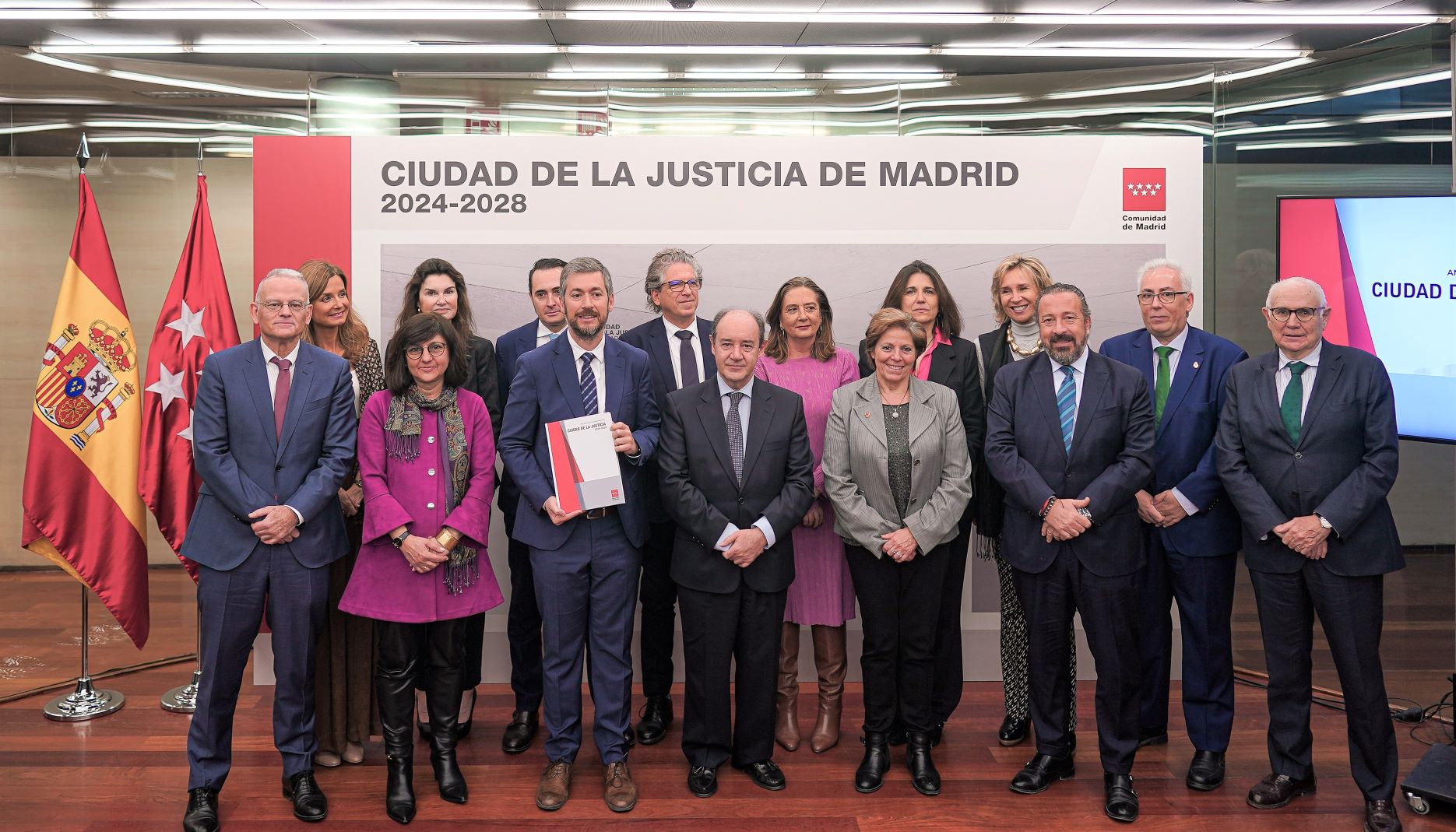 El decano Alberto N. García Barrenechea ha asistido hoy a la presentación realizada por el consejero de Presidencia, Justicia y Administración Local, Miguel Ángel García Martín, sobre el anteproyecto de la nueva Ciudad de la Justicia en Madrid, que se ubicará en el barrio de Valdebebas y unificará en un solo complejo todas las sedes repartidas actualmente por la capital.