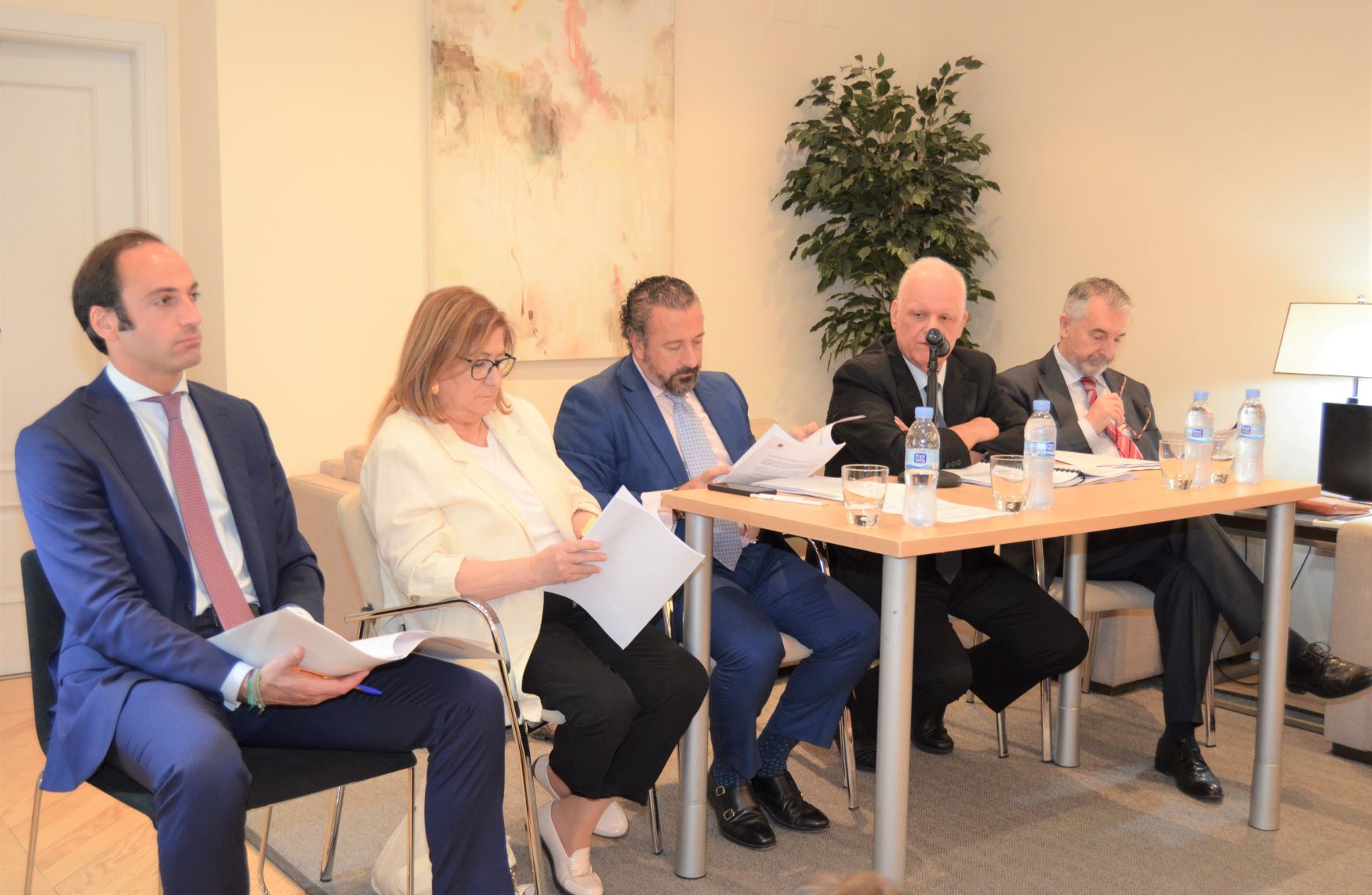 (En la imagen, foto final de los participantes en el acto, y el decano Alberto N. García Barrenechea junto a Julia Fernández Cantillana, directora de Colectivos y Justicia de Santander, y Juan Pujol, presidente de Lefebvre).