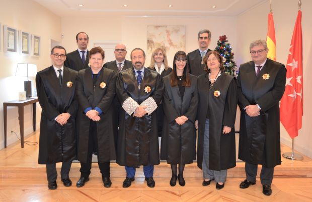 En la imagen, de izda. a dcha. los miembros de la Junta de Gobierno Francisco Montalvo, María Pardillo, Delia León, Joaquín de Diego y el decano Alberto N. García Barrenechea, con Yolanda Ibarrola (viceconsejera de Justicia y Víctimas de la CM) y Carmen Martín García-Matos (directora general de Infraestructuras Judiciales de la CM), Arturo Romero, y la vicedecana M.ª del Carmen Giménez Cardona.