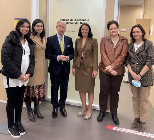 La Comunidad de Madrid ha atendido la petición del Gobierno de Colombia de conocer el funcionamiento de su red de Oficinas de Asistencia a las Víctimas del Delito (OAVD). La viceconsejera de Justicia y Víctimas de la Comunidad, Yolanda Ibarrola, mantuvo en el día de ayer un encuentro en las instalaciones de los juzgados de Violencia sobre la Mujer de la calle Albarracín de la capital, con representantes de su Consulado, junto a nuestra vicedecana, Carmen Giménez Cardona. El país latinoamericano quiso conocer también el Servicio de Representación Procesal (SRP) del ICPM, al que el Ejecutivo autonómico destinará este año 120.000 euros, situándose a la vanguardia de la ayuda que pueden recibir quienes sufran un acto delincuencial.