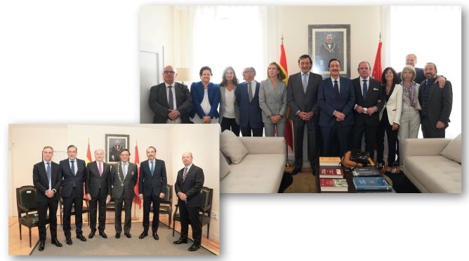 (En la imagen, Gabriel M.ª de Diego con miembros de la Junta de Gobierno del ICPM. En la parte inferior, y de izda. a dcha. José Ramón Navarro, Enrique López, Juan Carlos Estévez, Gabriel M.ª de Diego, Manuel Marchena y Juan Carlos Campo.)