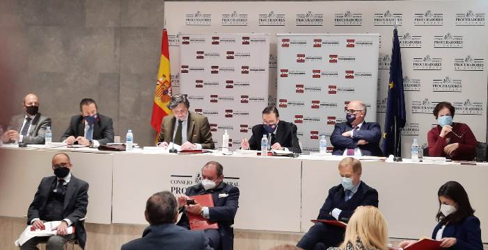 Por su parte, Carmen Giménez Cardona informó sobre el incremento de partidas para formación tras la reciente aprobación del anteproyecto de Ley de Eficiencia Procesal, encaminado a adaptar la Justicia al "mundo digital". La vocal señaló que éste obligará a asumir un esfuerzo importante en materia de comunicación y mediación, para que los colegiados estén preparados frente a la nueva regulación. En cuanto a la mencionada Plataforma de certificación de envíos, adelantó que es un sistema seguro y eficaz, encriptado, que respeta la ley de protección de datos y garantiza la trazabilidad del mensaje. Estará operativo el 1 de enero con un bono de bienvenida de 5€, y vendrá acompañado de una campaña de comunicación con carteles, vídeos informativos y tutoriales.