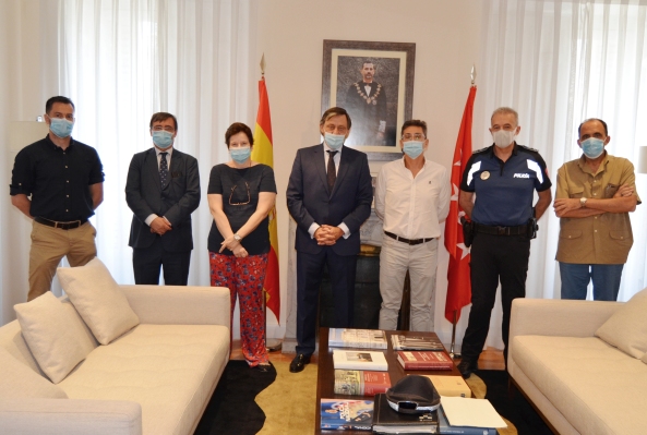El pasado día 9 el decano, Gabriel M.ª de Diego, la vocal Carmen Giménez y el director del ICPM, Mariano Rodríguez, recibieron en nuestra sede al Comisario Jefe del Área de Policía Judicial, acompañado por el Inspector Jefe Adjunto y dos policías de la Unidad de Gestión de la Diversidad de la Policía Municipal de Madrid.