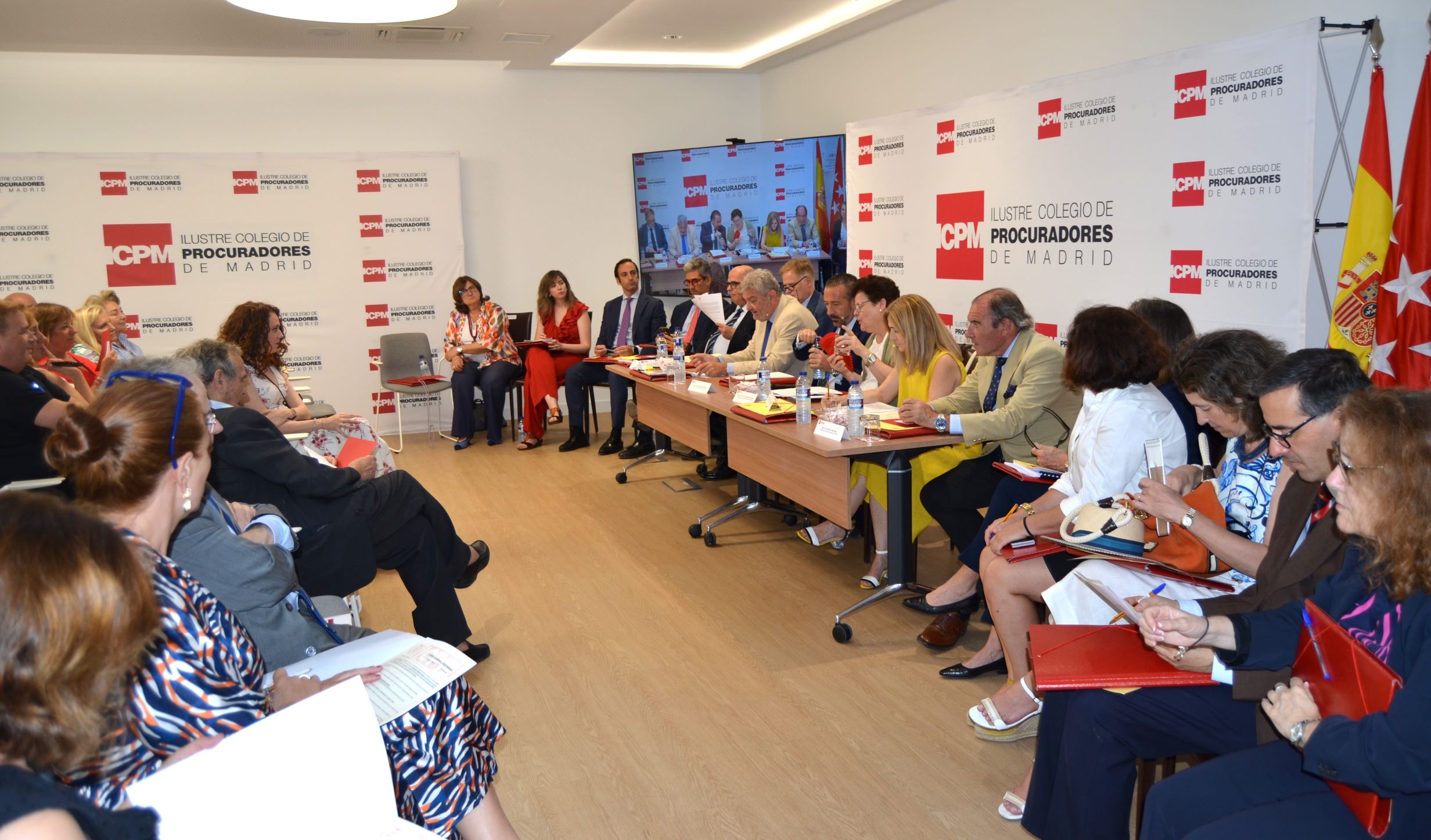 Una vez abierta la sesión, el decano, Alberto N. García Barrenechea, resaltó el carácter económico de la celebración de esta junta y su satisfacción por el resultado positivo del ejercicio, que resumió como un "resultado esperanzador". Además, la Junta de Gobierno presentó el Informe de gestión y la Memoria de actividades del 2024, destacándose, entre otras, la entrada en vigor de la Ley de Eficiencia y nuevos retos a los que nos enfrentamos; el inicio de las obras de la Ciudad de la Justicia en Madrid y las reuniones mantenidas para conocer de primera mano los espacios destinados a prestar servicio a los procuradores; el despliegue de una infraestructura corporativa disponible en todas las Sedes y Delegaciones del ICPM para prestar servicio wifi; y la inauguración de las salas o Puntos de Acceso Seguros para actuaciones judiciales telemáticas desde nuestra sede, un hito para la Procura madrileña tecnológicamente pionera en España.