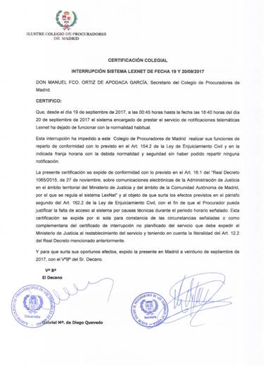 El ICPM comenzó a normalizar la situación, de todas aquellas notificaciones que desde las 15:00 h. del día 18 de septiembre fueron depositadas en el buzón del Colegio y que por las incidencias producidas durante los días 19 y 20 de septiembre no pudieran ser tramitadas conforme a lo dispuesto en el Art. 154.2 de la LEC.