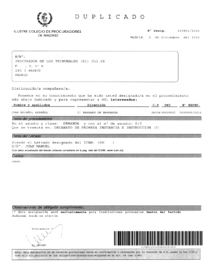 - Designando Procurador en fase de instrucción.