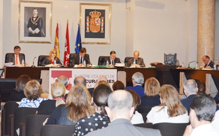 Abrió el acto el Decano Gabriel Mª de Diego, y dedicó sus primeras palabras en recuerdo del compañero recientemente fallecido, Contador de la Junta de Gobierno, Ilmo. Sr. D. Manuel Lanchares Perlado, para a continuación y por otro lado, a congratularnos porque el nuevo Estatuto ya está pendiente solo de su publicación en el BOCAM tras la resolución del Consejero de Presidencia, Justicia y Portavoz del Gobierno de la Comunidad de Madrid que ha dictado la Orden 1841/16, que ordena la inscripción en el Registro de Colegios Profesionales de la Comunidad de Madrid.
