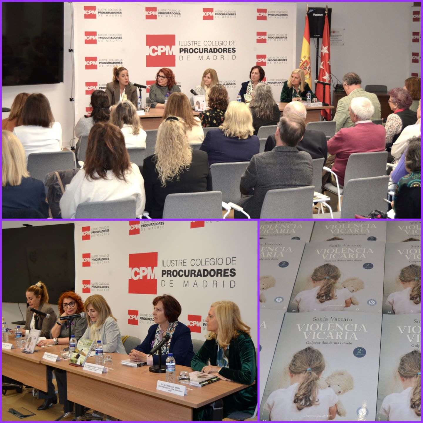 La tesorera del ICPM, Natalia Martín de Vidales, presentó a las invitadas e intervinientes en la mesa, la autora Sonia Vaccaro; la prologuista de la obra, Teresa Peramato Martín (fiscal de sala contra la Violencia sobre la Mujer. Jefa de lo Penal del Tribunal Supremo); Cira García Domínguez, magistrada del Juzgado de Violencia sobre la Mujer n. º 1 de Getafe; y a la vicepresidenta de la Comisión de Igualdad del ICPM, Gloria Leal Mora.
