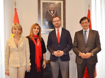 En la imagen, de izda. a dcha. Pilar Azorín-Albiñana (Vocal 6ª), Rocío Sampere (Vicedecana), Javier Maroto (Vicesecretario de Sectorial del PP) y Gabriel Mª de Diego (Decano).