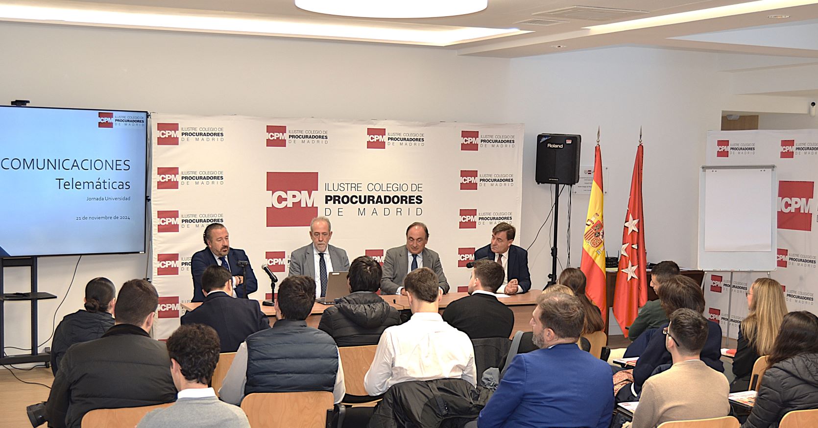 En la tarde de ayer tuvo lugar la celebración del solemne acto de jura de nuevos compañeros procuradores que, una vez cumplimentados los requisitos de colegiación, se incorporan como ejercientes. Los respectivos padrino y madrinas presentaron a JOSÉ MANUEL GARCÍA GARZÓN, GEORGETA SIMONA ION ZANFIR y ELENA PASCUAL PÉREZ, que juraron/prometieron el cargo de procurador y fueron investidos con la toga.