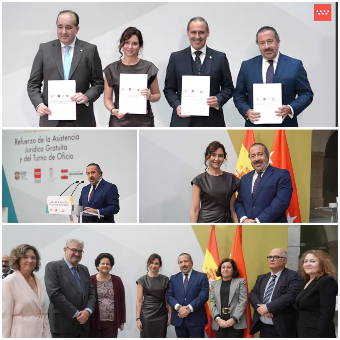 El ICPM celebra el significativo avance que supone el Acuerdo de Legislatura para reforzar la asistencia jurídica gratuita y el turno de oficio alcanzado con la Comunidad de Madrid, refrendado en un acto celebrado ayer entre el decano Alberto N. García Barrenechea y la presidenta de la Comunidad de Madrid, Isabel Díaz Ayuso, junto a los decanos de los Iltres. Colegios de la Abogacía de Madrid y Alcalá de Henares.